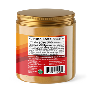 Our Kenyan Sprouted Macadamia Nut Butter offers a smooth, creamy and buttery experience that is both satiating and filling. It can be used as a base for making creamy nut milks or as a wonderful addition to smoothies. The taste is incredible on vegetables, fruit, or anything your heart desires.