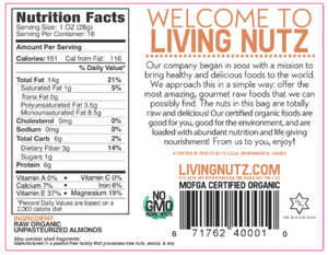 Our almonds come from organic farms in Spain and Italy. With all of their nutrition and flavor intact, these unpasteurized European almonds are truly raw and are therefore able to be fully sprouted. Additionally, since they come from Europe, they're closer to the original heirloom varieties of almond trees than grafted California almonds.